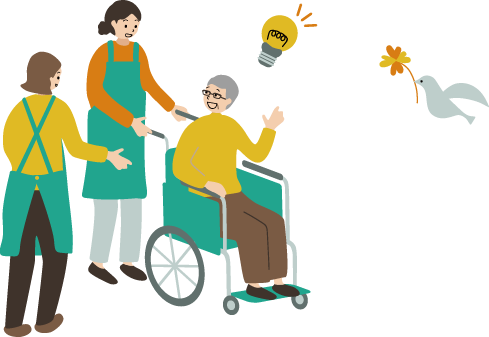 介護や医療の専門的なサポートはもちろん、なにげない日常の会話やふれあいの中にも、心地よい安心感とぬくもりが感じられるような、そんな関係づくりを大切にしています。